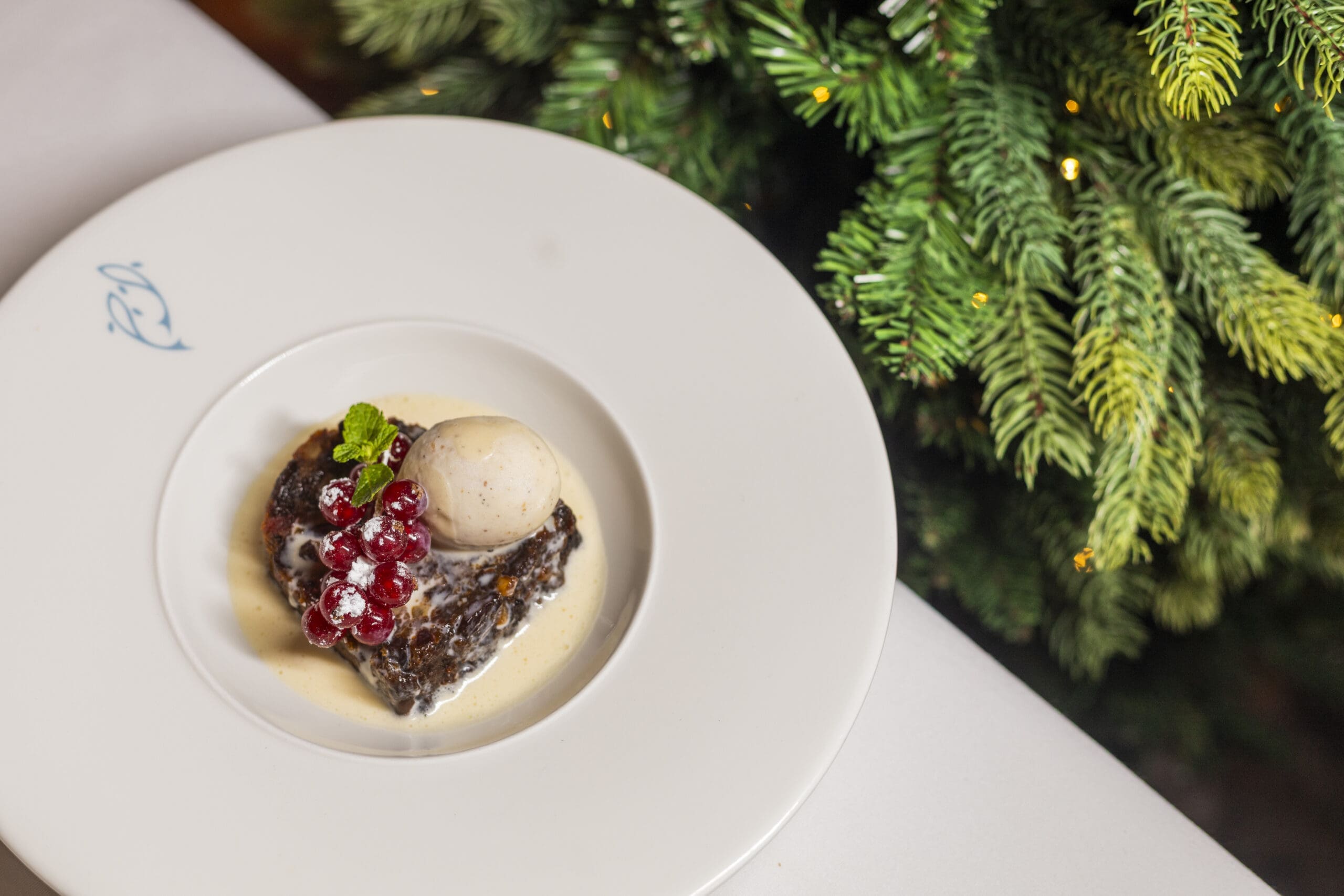 Baked fillet, Gruyère cheese crumb, leek, fondue Chateau potatoes, parsley cream