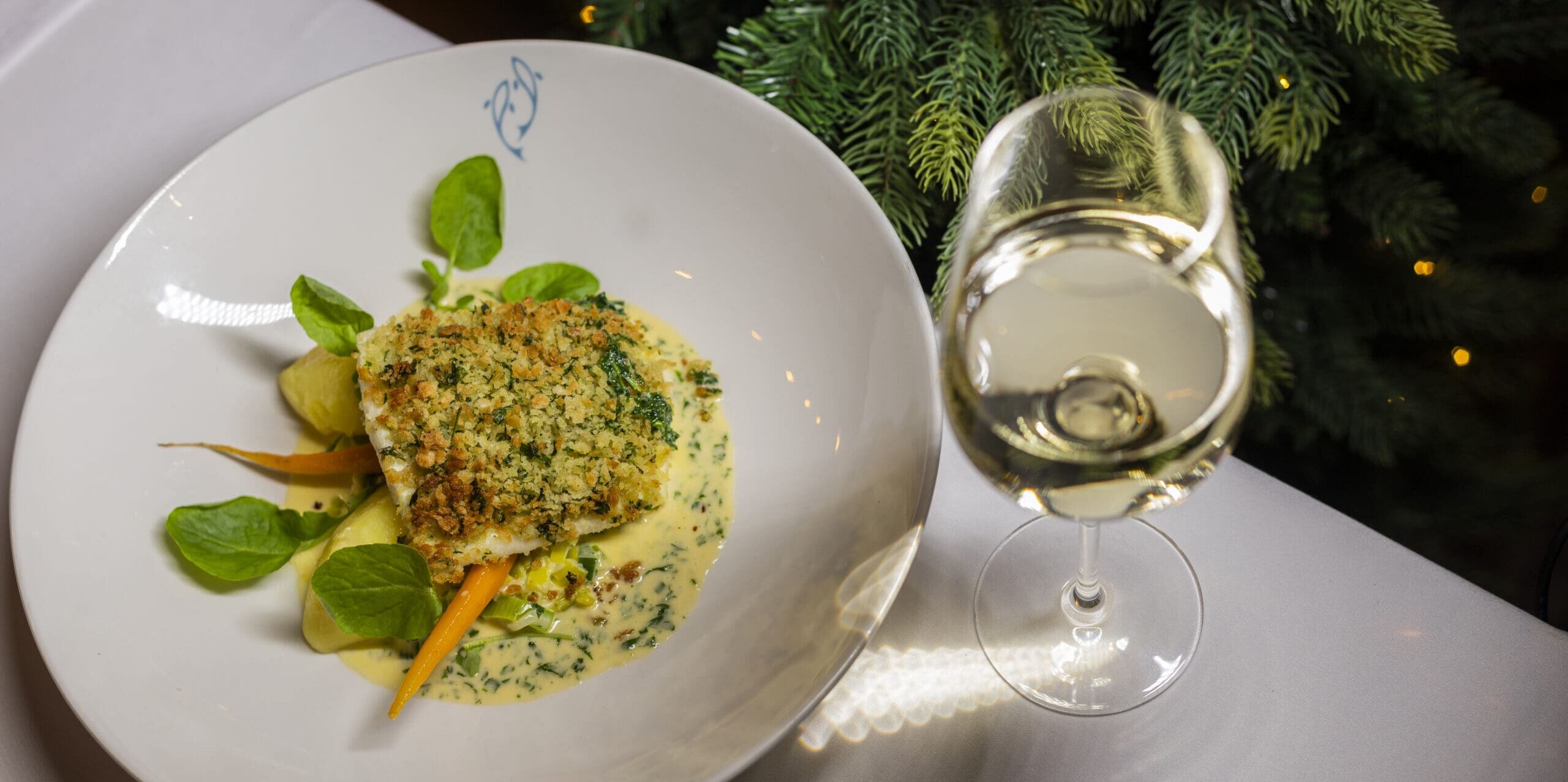Irish fish & shellfish, creamed vegetable broth, cheddar mash