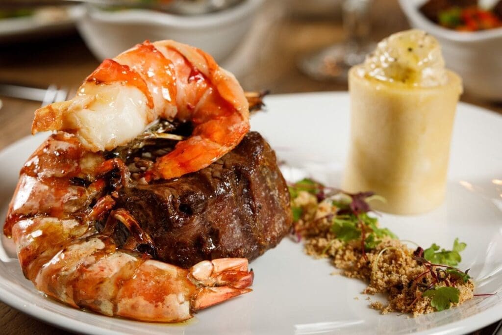 Peter Hannan’s beef has gained worldwide recognition as one of the most succulent, tender steaks available on the global market, which can be upgraded to a surf n’ turf, served with our signature chargrilled tiger prawns.